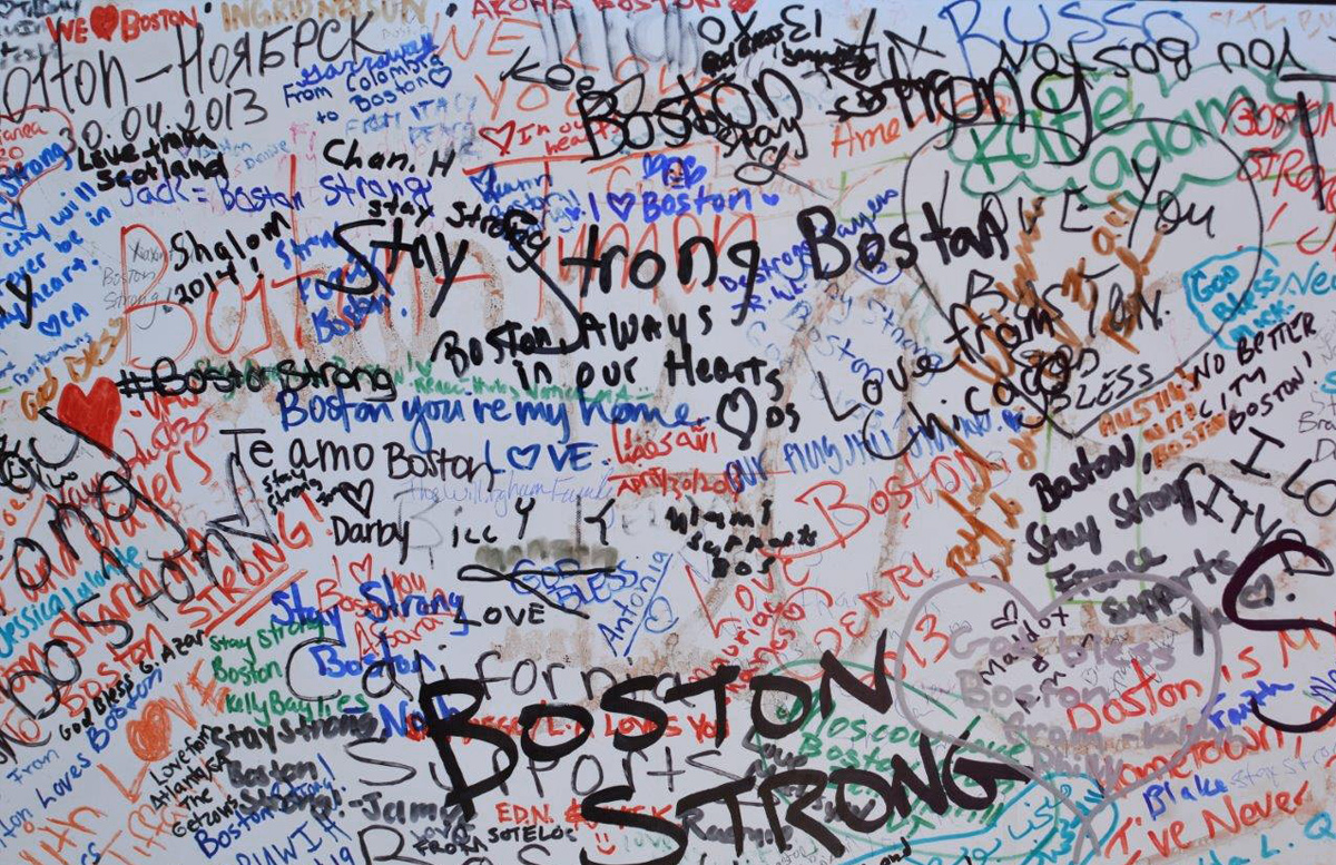 Wall of prayers after Boston bombings, Boylston Street.